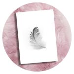 Eén poster bevat de afbeelding van een veertje, de ander heeft een inspirerende tekst.